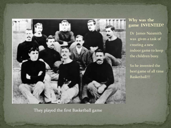 This may be done by throwing the ball from any part of the grounds, with. His first intention was to bring outdoor games indoors, namely, soccer and lacrosse. He struggled to come up with a game that met the objectives of his directive. But tackling on the wooden gym floor was too rough, rains said. In late january, 1939, james naismith, the man who invented the game of basketball, visited a radio station just two blocks from times square. He said the recording changes just about everything that's the first basketball game didn't go so well because people started to tackle each other and they were knocked out and had some black eyes. Naismith's game quickly became popular. In 1898 he received his medical degree from the university of colorado, before founding a basketball program at the university of kansas, where he also took on the role of physical education director. James naismith, the inventor of basketball, was an instructor in physical education at the college. Unlike the modern basketball game, the first game witnessed only nine players on each side. The game was invented by a canadian, dr. During that first game, naismith quickly discovered how violent the game was turning, so he needed to make some adjustments. It was luther halsey gulick, naismith's supervisor and the college's first physical education director, who challenged naismith to invent a new indoor game for the school's students to play during the.